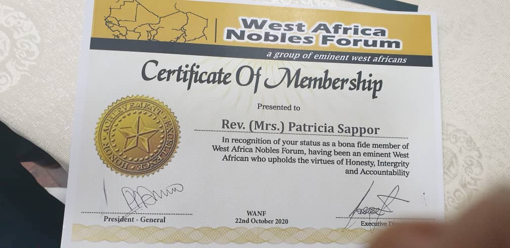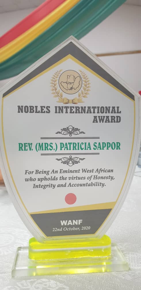 As a recipient of this year’s prestigious Nobles International Award for Men and Women of Integrity in West Africa, Mrs Sappor, who is also a revered preacher at the Action Chapel International, was presented with a plaque, medal and a certificate of membership after she was inducted into the forum’s top tier category.