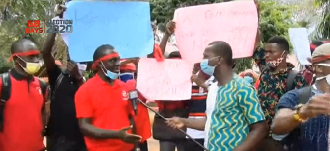 The group of enraged demonstrators is marching towards the offices of GES and the Ministry of Education.
