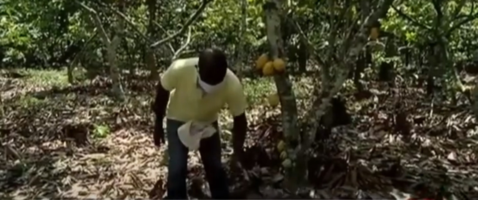 The month of May is the pruning season for cocoa farmers in Ghana. Busily trimming the branches of his cocoa trees, Amos – another cocoa farmer explains the extent to which the coronavirus has disrupted his income.
