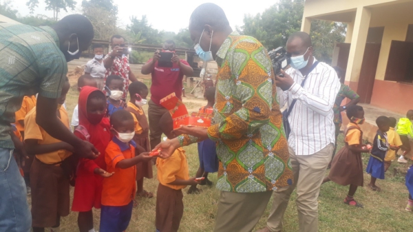 Chief Executive Officer (CEO) of the Ghana Cocoa Board (COCOBOD), Joseph Boahen Aidoo has visited two basic schools in the Ahafo Region to celebrate this year’s chocolate week with the pupils and students.