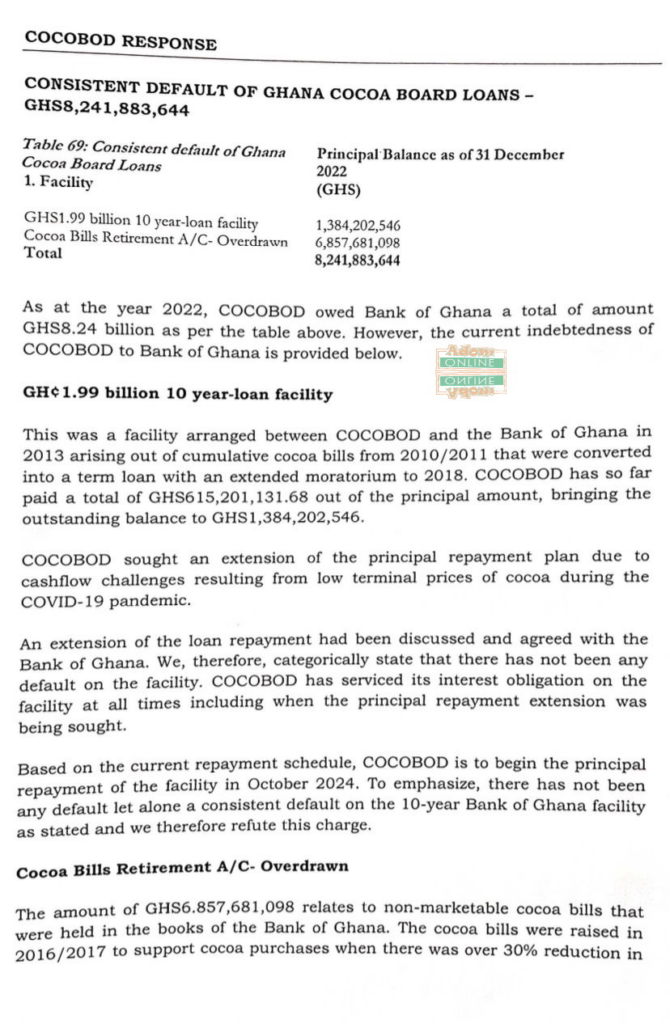The Ghana Cocoa Board (COCOBOD) has responded to claims of consistent default on its loans, clarifying its financial obligations and repayment status.