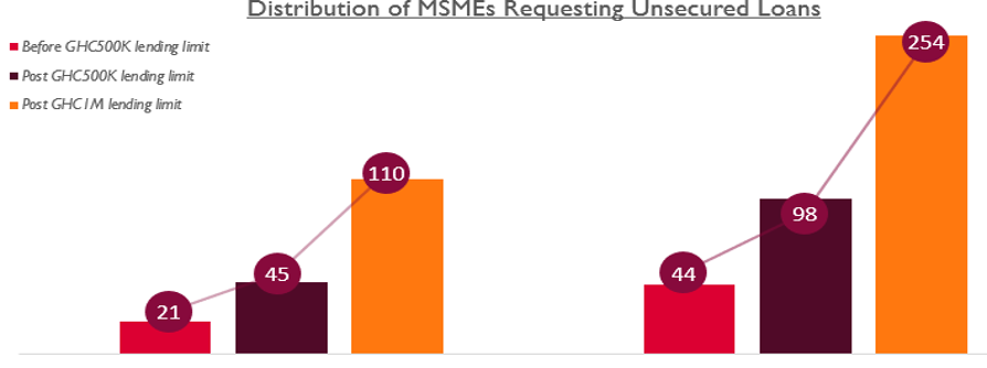 Traditional lending practices among financial institutions often involve some form of collateral, making it somewhat difficult for MSMEs, especially those in the informal sector, to secure loans. Most banks in Ghana have had to emphasize collaterals due to widespread challenges with the creditworthiness of businesses. Across the banking landscape, only a sufficiently positive customer historic borrowing conduct can provide the required level of comfort for banks to lend instead of security.
