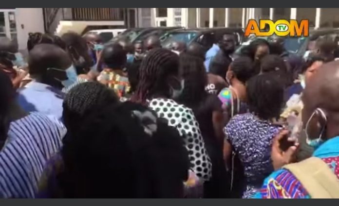Scores of teachers from across the country have thronged the premises of the Ghana Education Service (GES) in Accra agitating over what they described as an attempt to fail them in their promotional examination.
