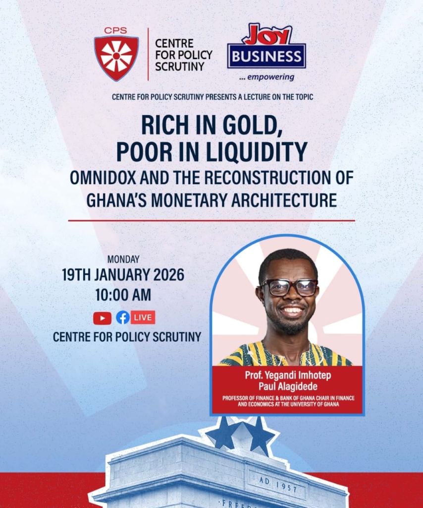 The Centre for Policy Scrutiny (CPS), in collaboration with JoyNews, will on January 19, 2026, host a major public lecture in Accra to examine Ghana’s efforts to strengthen the cedi by leveraging the country’s vast gold reserves.