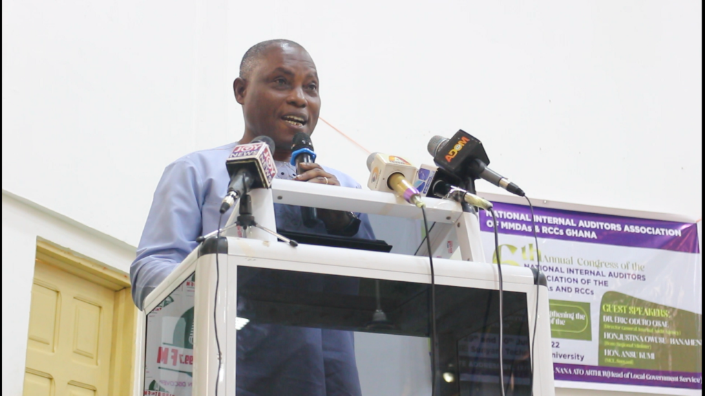 Mr. Ayivi spoke at the 6th annual congress of the National Internal Auditors Association of Metropolitan, Municipal, and District Assemblies and Regional Coordinating Councils in Sunyani in the Bono Region, on June 29, 2022.