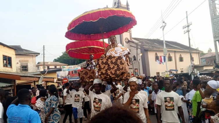 An impressive procession featuring exquisitely attired Chiefs, Queens, and stool holders, some of whom were carried in beautifully decorated palanquins, commenced from Akotobinsin at 1200 hours.