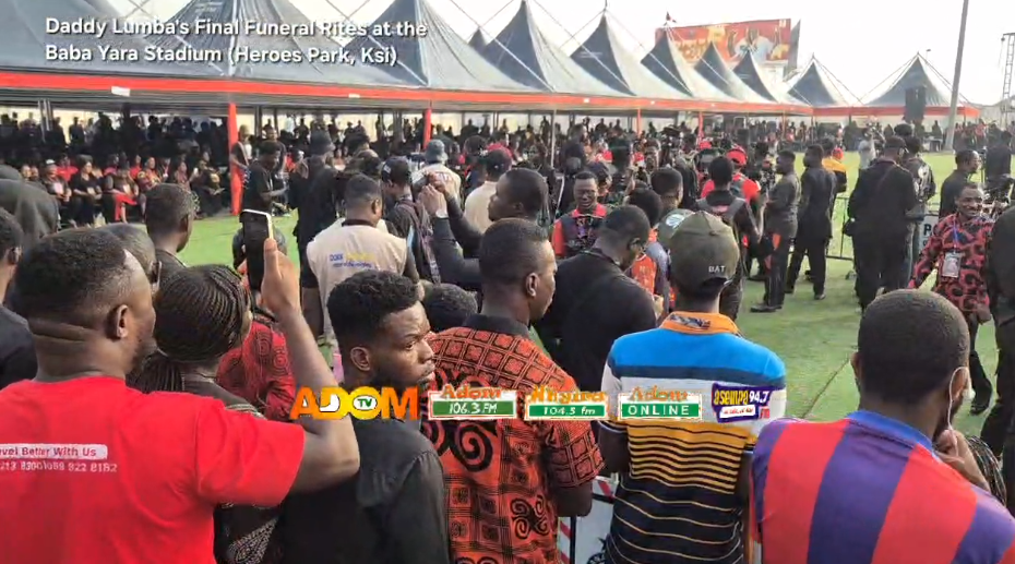 Thousands of mourners, music lovers and dignitaries have converged on the iconic Baba Yara Sports Stadium this morning as final funeral rites for highlife legend Charles Kwadwo Fosu, affectionately known as Daddy Lumba, unfold.