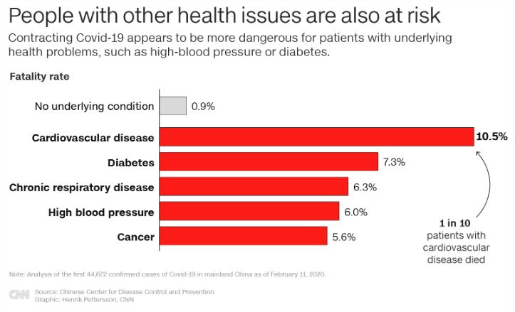 Underlying health issues were also a major factor, according to Chinese researchers. People who suffered from chronic diseases before contracting the virus were more likely to die, the data suggests.