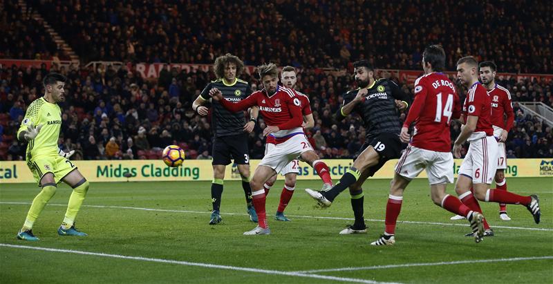 Diego Costa scored his 10th goal of the season as Chelsea won 1-0 at Middlesbrough to record a sixth consecutive victory and take over at the Premier League summit.