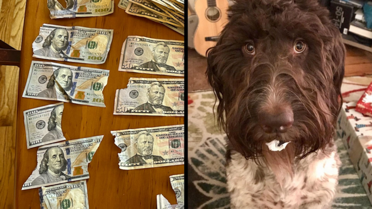 A money-hungry pooch was in the dog house for chewing up $4,000 (£3,153) cash that his owners had left out.