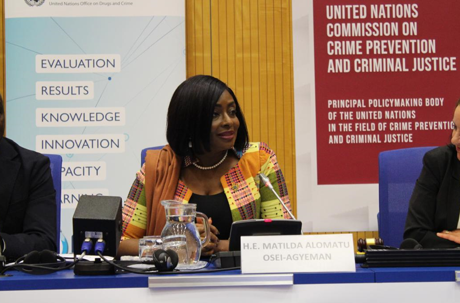 Ghana co-organised a strategic side event with the UNODC on enhancing good governance and the use of evidence in policy-making, presenting the evaluation of the Ghana National Anti-Corruption Action Plan (NACAP). The Attorney-General and Minister for Justice and the Ambassador, H.E. Matilda Alomatu Osei-Agyeman shed light on Ghana's experience in the fight against corruption.