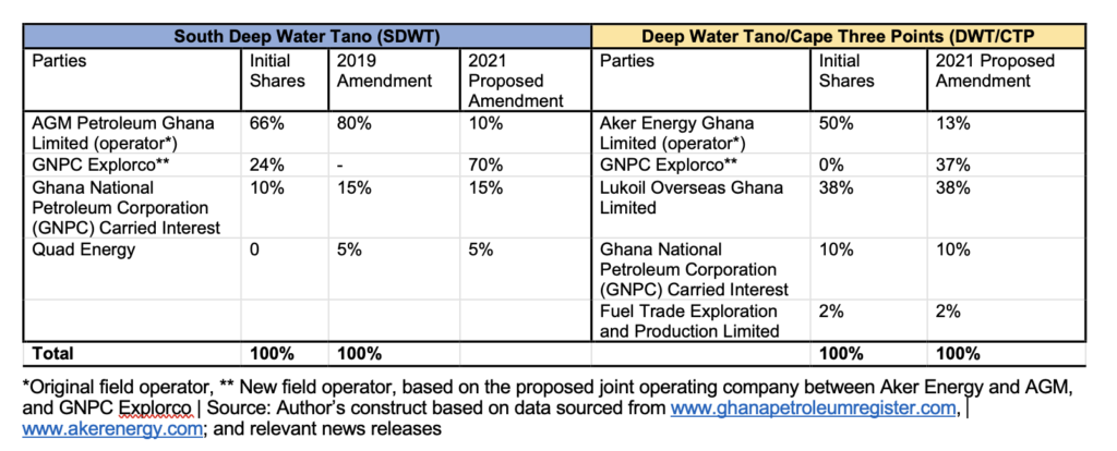 On 30 July 2021, Ghana’s Energy Minister sent a memo to Parliament explaining that two sister Norwegian affiliated companies — Aker Energy Ghana Limited (“Aker Energy”) and AGM Petroleum Ghana Limited (“AGM”) —seek to dilute their interests in the Deepwater Tano Cape Three Points and South Deepwater Tano blocks located offshore Ghana. Aker Energy was founded in February 2018 as a 50-50 joint venture between Aker ASA (listed on the Norwegian Stock Exchange) and TRG AS, a company controlled by Norwegian billionaire Kjell Inge Røkke. TRG AS also owns AGM Petroleum Ghana Limited.