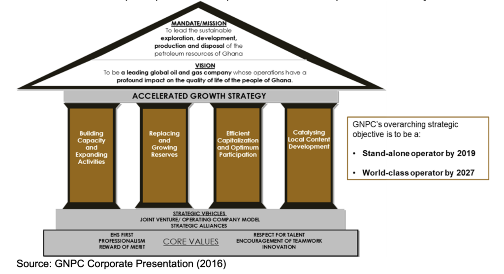 However, the core of this strategic intent by GNPC to grow reserves and specifically become an operator is not new – it goes back over ten years. Therefore, persons attempting to make this look like something new are instead, in my view, deliberating obfuscating matters. In fact, as far back as 2016, GNPC launched a new strategic vision – the accelerated growth strategy – based on the following (see also figure below):