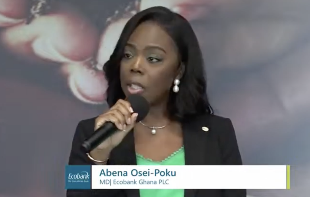 Joana Mensah, Country Chief Risk Officer at Ecobank Ghana, highlighted the bank's sustainable financing solutions, including accreditation to the Green Climate Fund.