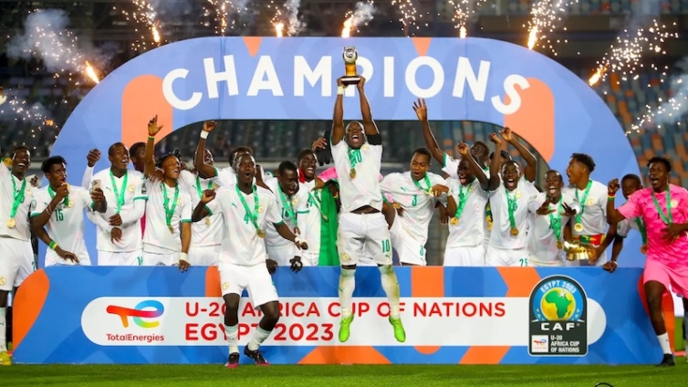 Senegal players celebrate victory during the 2023 Africa Cup of Nations final match between Senegal and Gambia held at Cairo International Stadium in Cairo, Egypt on 11 March 2023 ©Weam Mostafa/BackpagePix