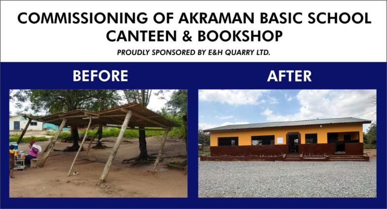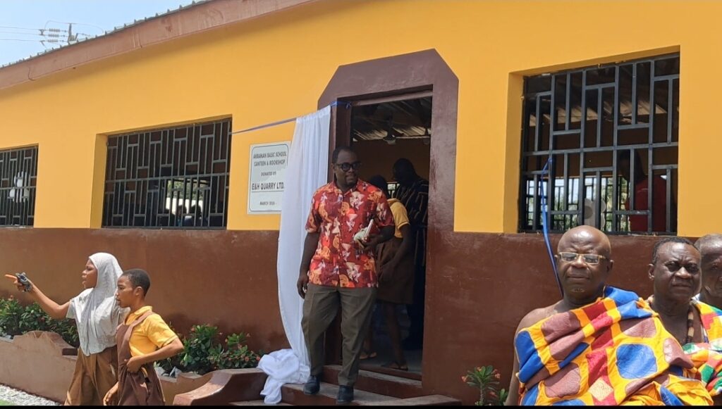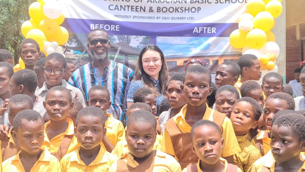 Akraman Basic School at Nsawam Adoagyiri in the Eastern region has received a major boost after E&H Quarry constructed a modern canteen and bookshop for the school, ending years of pupils eating in what was described as a dangerous shed.