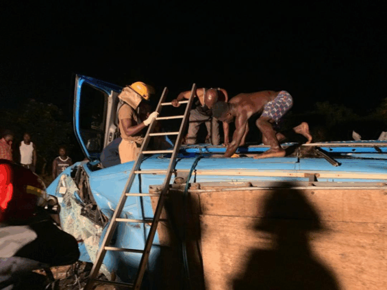 Firefighters from the Mankessim Fire Station later extricated two trapped victims who were suspected to have died instantly.