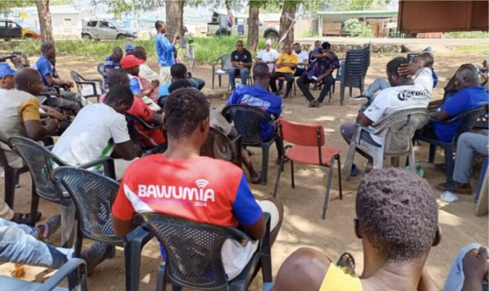 Officials of the NCCE after the engagement with the NPP, moved to the ‘Royal Ghetto’ to engage with youth in the Paga township on the need for them to participate in the 2024 elections peacefully, and not allow themselves to be used to perpetuate violence.