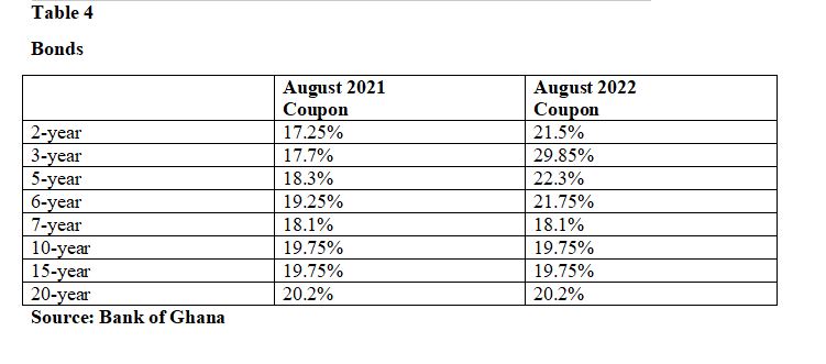 Table 4 below compares Bond coupon rates in August, 2021 and August, 2022