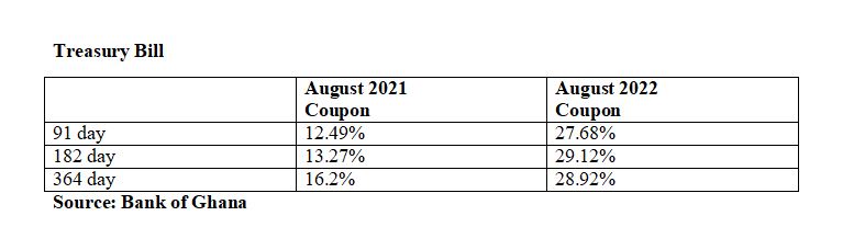 Table 3 below compares Treasury Bill rates in August, 2021 and August, 2022.