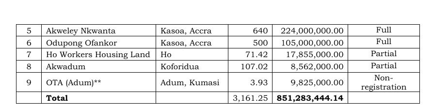 “Our inspection at Bortianor and Odupong lands at West Hills and Kasoa respectively, confirmed that people have fully encroached and occupied these lands,” the report stated.