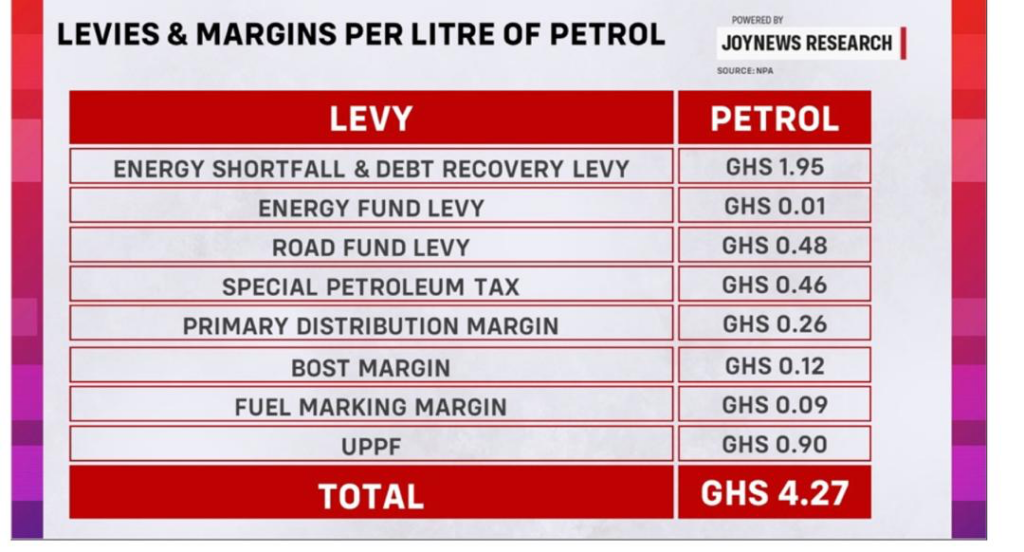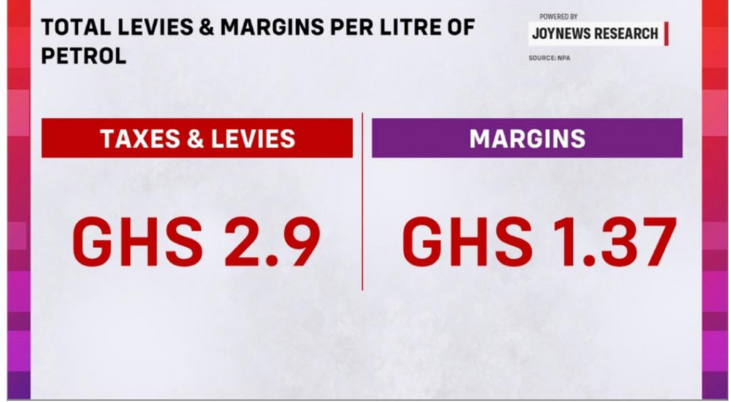 Based on data from the National Petroleum Authority, the following taxes, levies and margins form part of the petroleum price build-up: