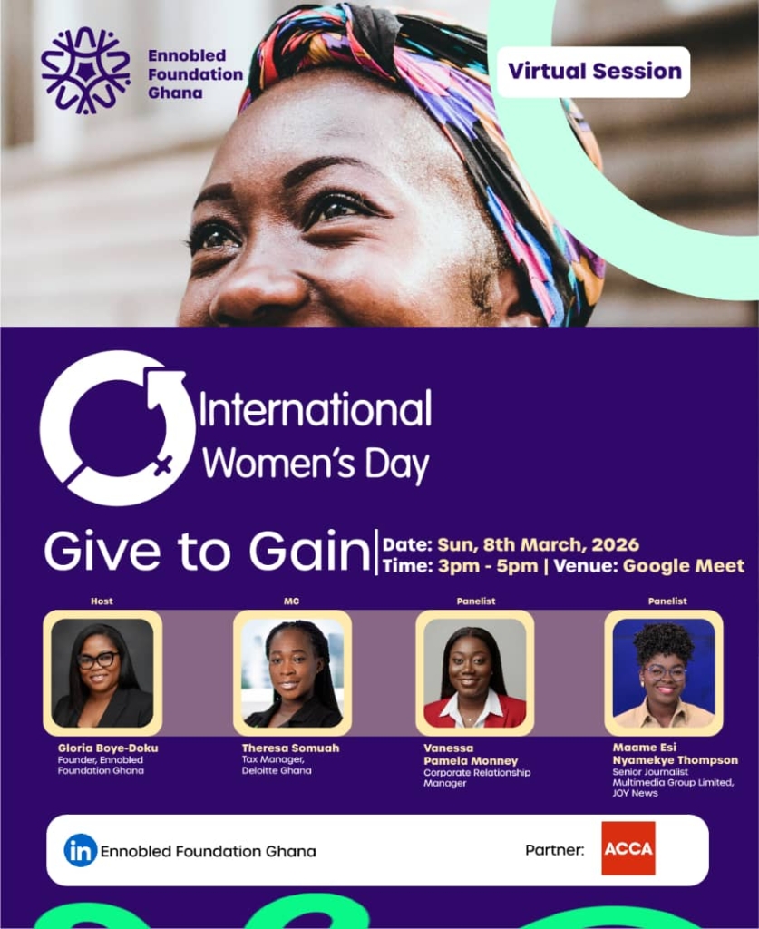 The Ennobled Foundation Ghana held a recent webinar on Sunday, March 8, 2026, to mark International Women's Day under the theme “Give to Gain.”