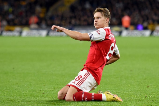 Odegaard turned home Fabio Vieira's low cross from close range 10 minutes after the restart and then drilled in the rebound after Jose Sa had kept out Gabriel Martinelli's low effort 15 minutes from time.