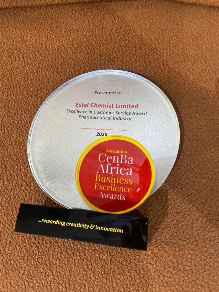 Estel Chemist Limited has been recognised for its outstanding commitment to customer-centred pharmaceutical care after receiving the Excellence in Customer Service (Pharmacy Industry) award at the 7th Edition of the CENBA Africa Business Excellence Awards.