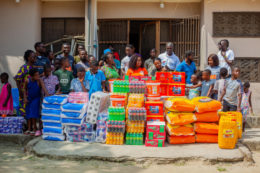 The "Feed the Orphans" project brought relief to orphanages in Cape Coast and Takoradi, with donations of food, sanitary items, and drinks benefiting 100 children.