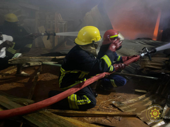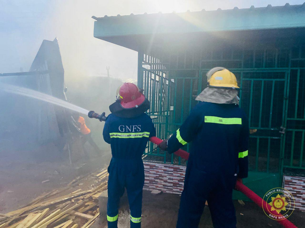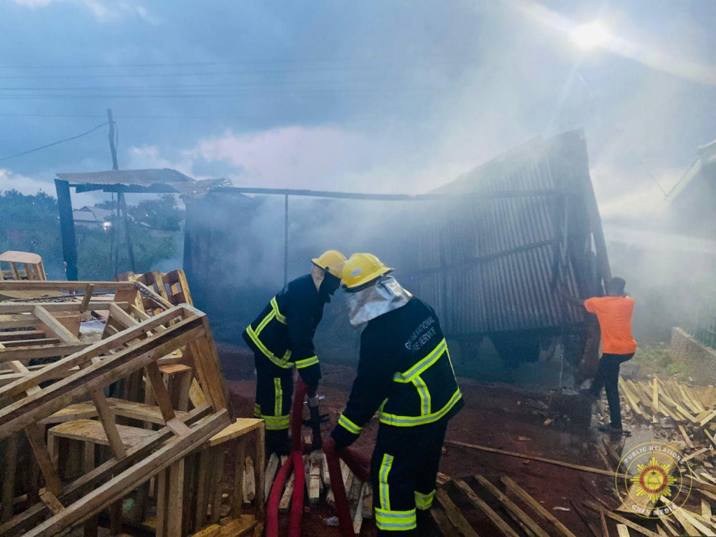 A fierce fire has destroyed two commercial metal containers and a range of goods at Baifikrom in Mankessim, in the Central Region, following a rapid response by firefighters on April 13, 2026.