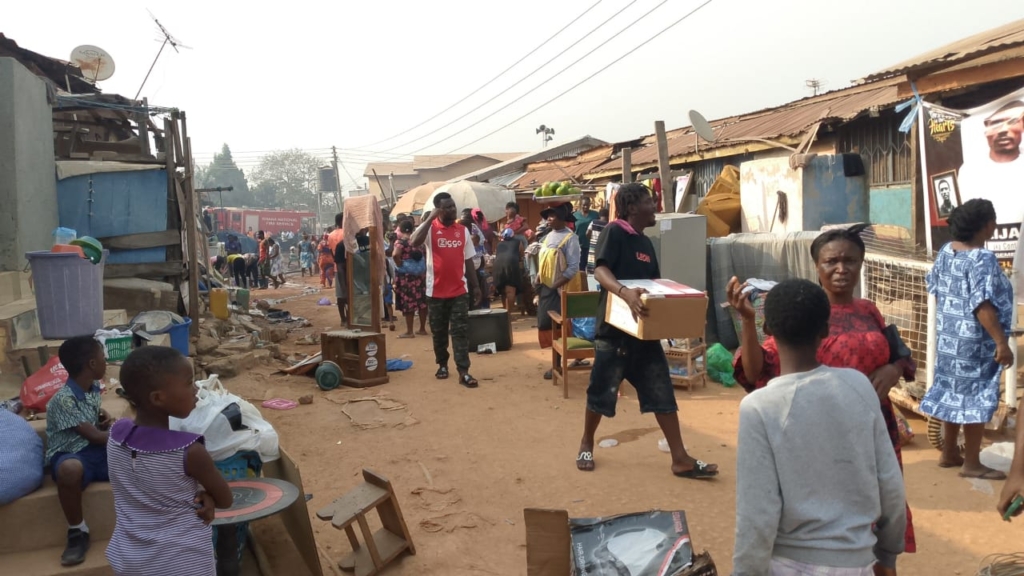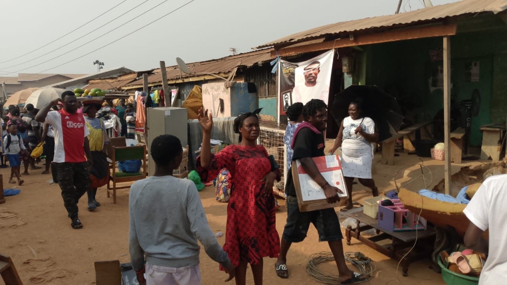One of the victims, identified as Auntie Ama, whose room and container shop were completely destroyed, said she was unable to salvage a single item from her property.