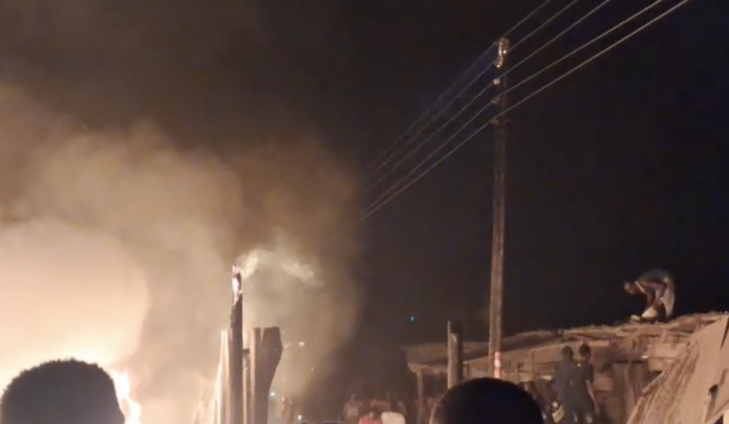 A fierce fire outbreak engulfed multiple wooden and container structures along the Agbogba to Ritz Junction Road near Madina, Accra, leaving behind a trail of destruction.