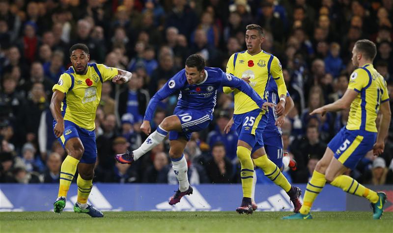 The Toffees have not won in the league at Stamford Bridge since 1994 and they endured further misery in the second half as Hazard snared his second after a lovely one-two with Pedro before the Spaniard got in on the act when he tucked home a rebound.