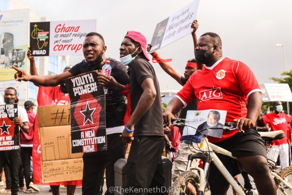 Myjoyonline’s Kenneth Awotwe Darko walked the meandering route with the protestors from the Kwame Nkrumah Circle to the Black Star Square on Wednesday, August 4, 2021.