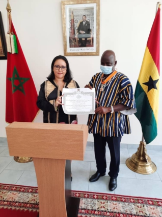 Moroccan Ambassador to Ghana, Imane Ouaadil conferred the award on him.
