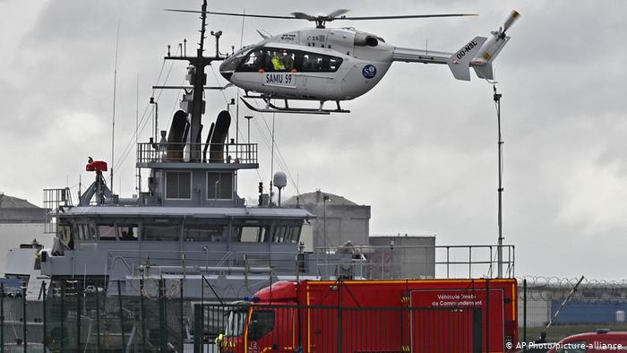 Five French vessels and a Belgian helicopter were mobilized when the migrant boat was reported in distress off the coast of Dunkirk, according to the regional French maritime agency.