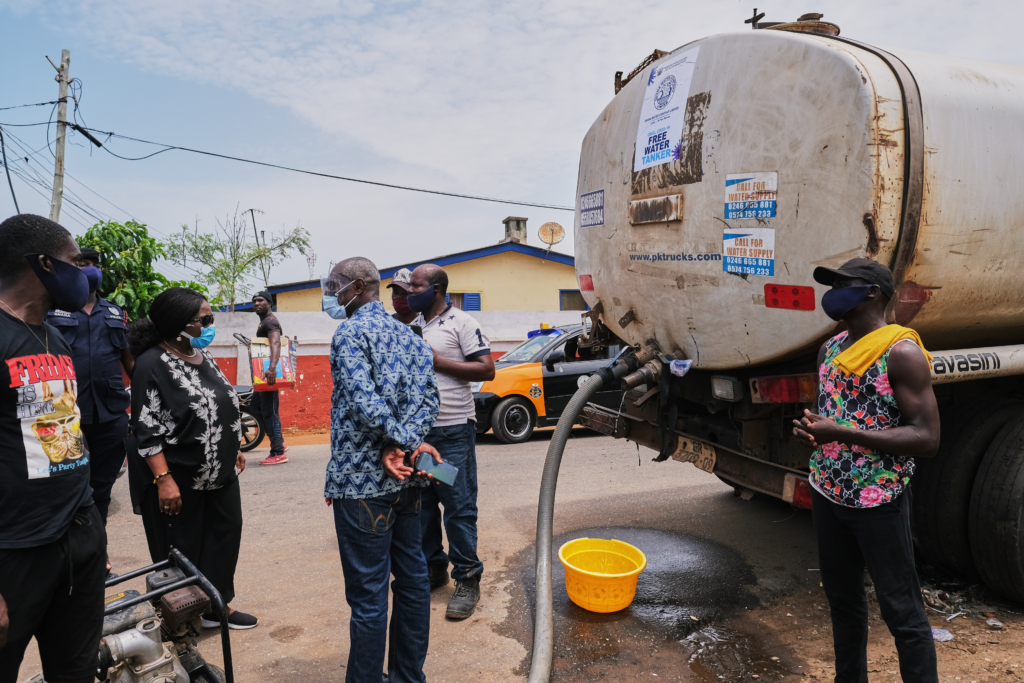 On Monday, Sanitation and Water Resources Minister, Cecilia Abena Dapaah, inspected the free water supply exercise in communities at Chorkor and Mamprobi all in the Greater Accra Region.