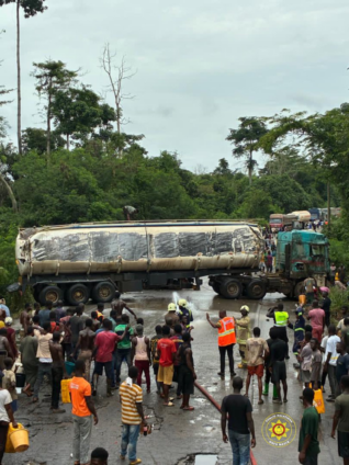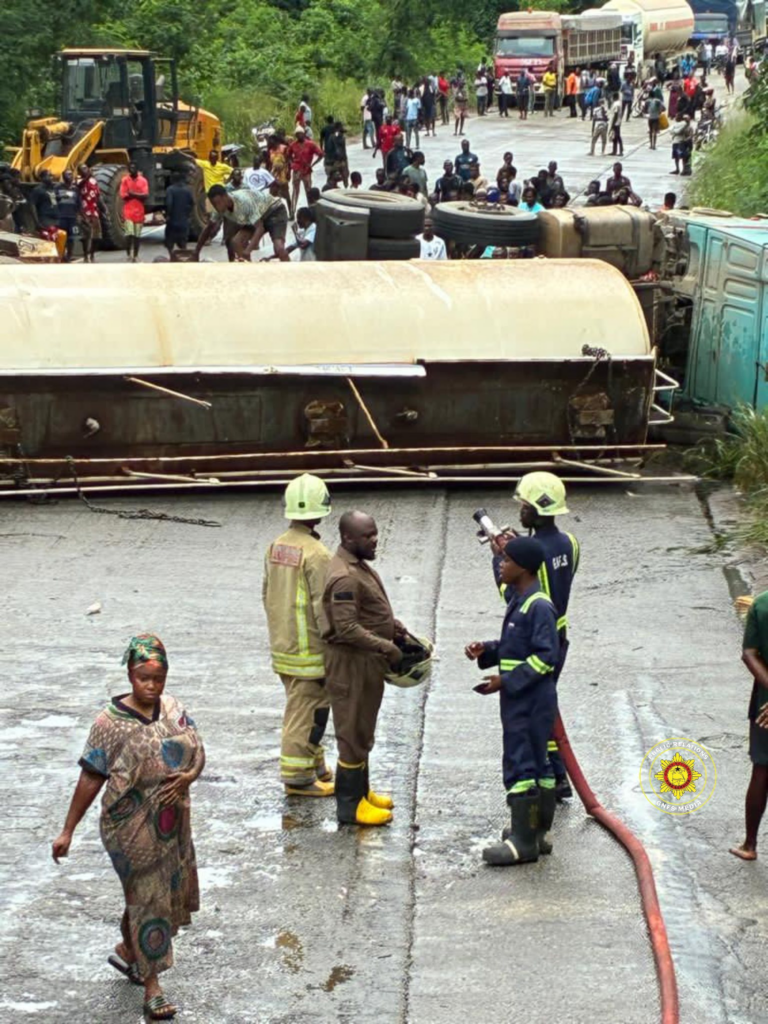 A fuel tanker accident around the Breku Forest along the Kumasi–Accra highway has resulted in the spillage of thousands of litres of diesel, raising safety concerns but stopping short of a major disaster due to a swift emergency response.
