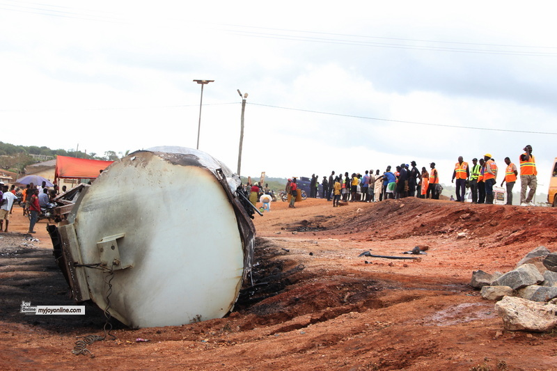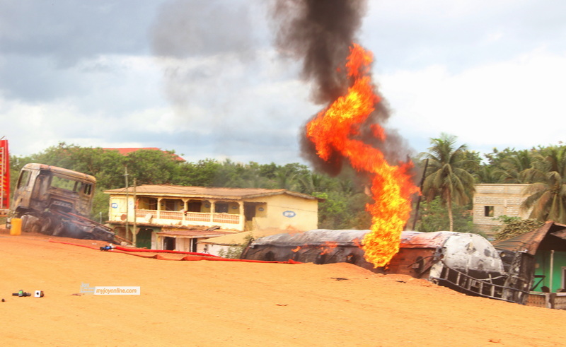 A combined team from the Winneba and Kasoa fire stations worked to contain the flames, but not before a second explosion occurred while they attempted to cool the burnt tanker.