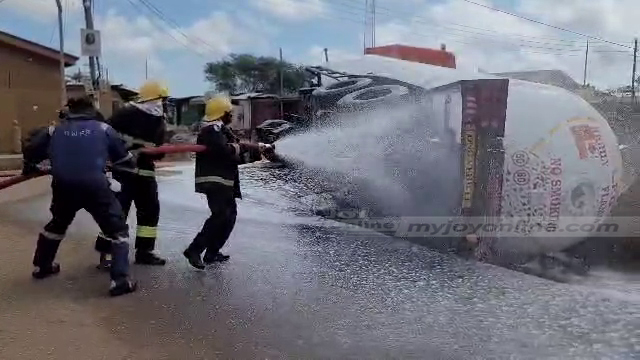 However, JoyNews sources indicate that officers from the Ghana National Fire Service are on the scene, cooling the tanker to prevent any potential explosion.