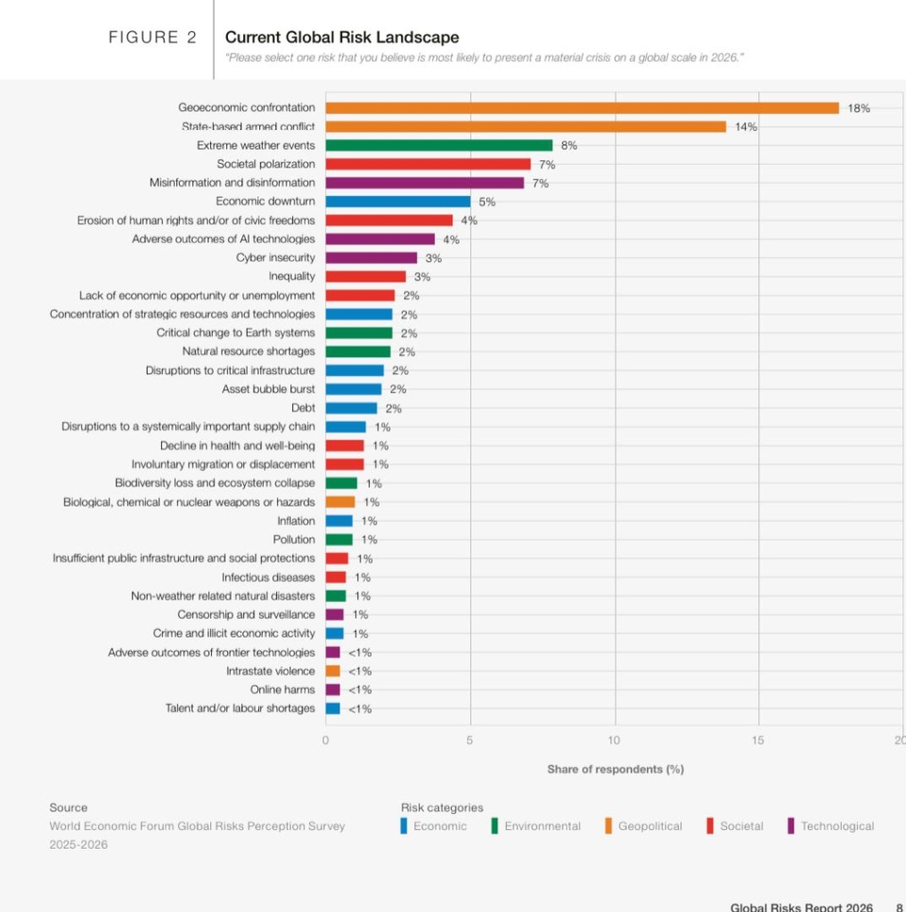 The World Economic Forum (WEF) has identified rising geoeconomic tensions as the world’s most pressing threat in 2026, highlighting a landscape of growing volatility and interconnection.