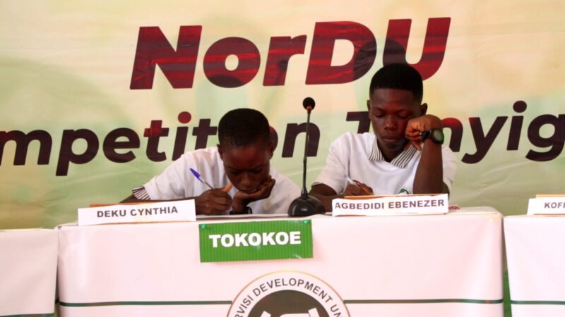 Addressing a gathering of pupils, teachers, chiefs, and parents at the grand finale of the 2024 NORDU Quiz Competition organised by the Norvisi Development Union (NORDU) in collaboration with UNIWIZ Foundation.