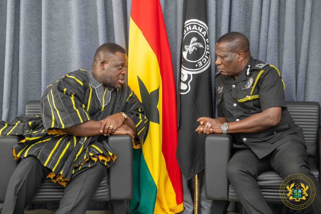 The Minister for Communication, Digital Technology and Innovations, Samuel Nartey George, together with Zambia’s Minister for Technology and Science, Felix C. Mutati, have paid a courtesy call on the Inspector-General of Police in Accra as part of ongoing Ghana–Zambia technology cooperation engagements.