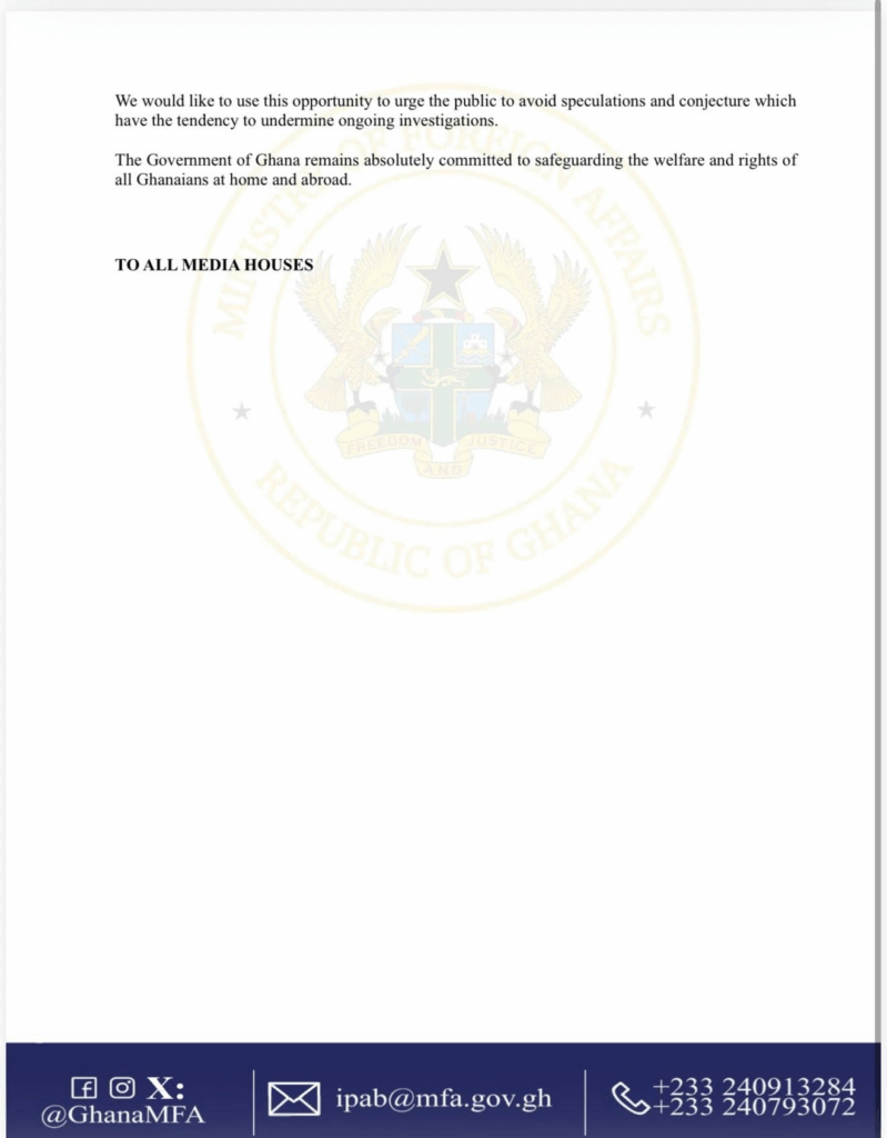 “The Government of Ghana remains absolutely committed to safeguarding the welfare and rights of all Ghanaians, both at home and abroad,” the Ministry concluded.