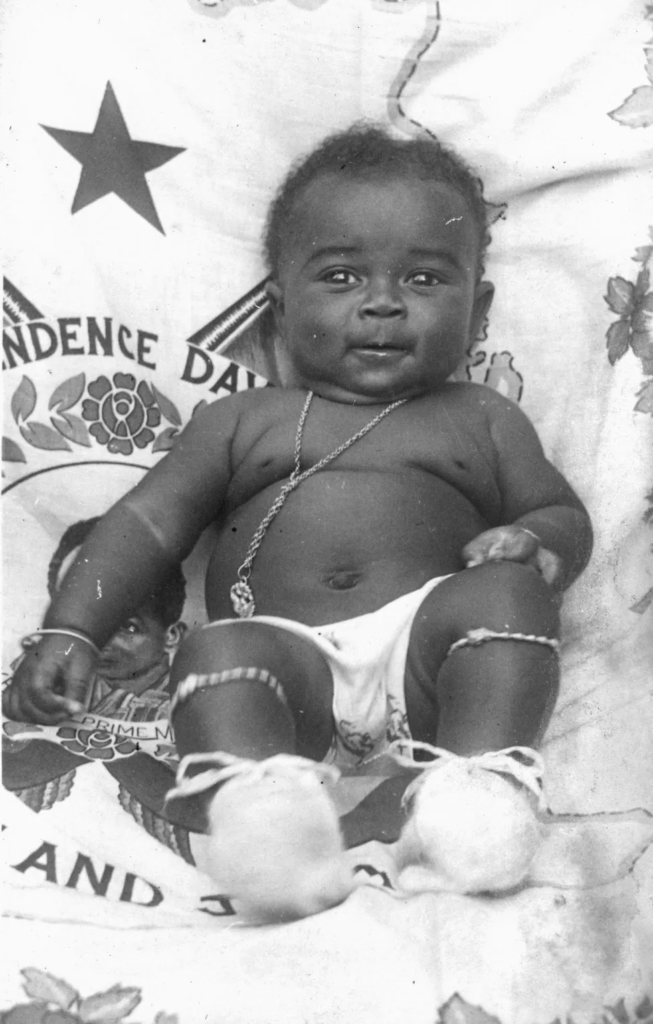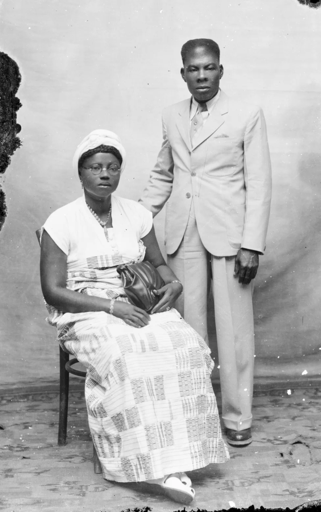 Around the time of Ghanaian independence, which fell on 6 March 1957, two proud parents brought their child to the studio to be photographed.