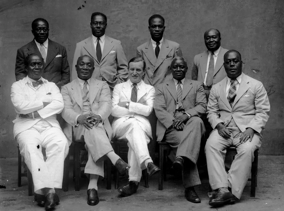 The men are considered to be the country's founders. Among them was Nkrumah (top row, second from right), who later broke away from the UGCC and led Ghana to independence.