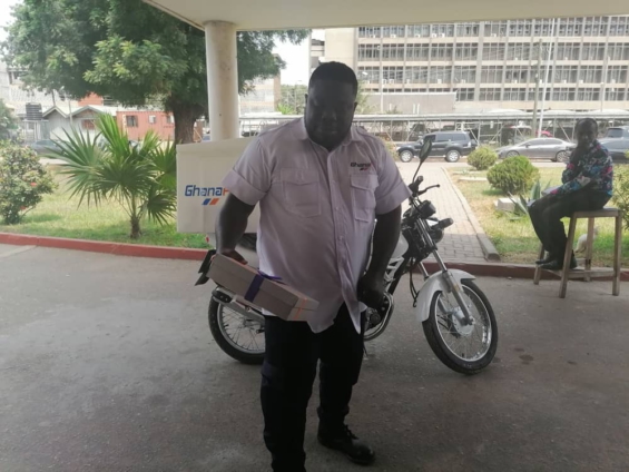 Managing Director of Ghana Post, Bice Osei Kuffour, hit the road to personally deliver parcels to clients on Valentine's Day.