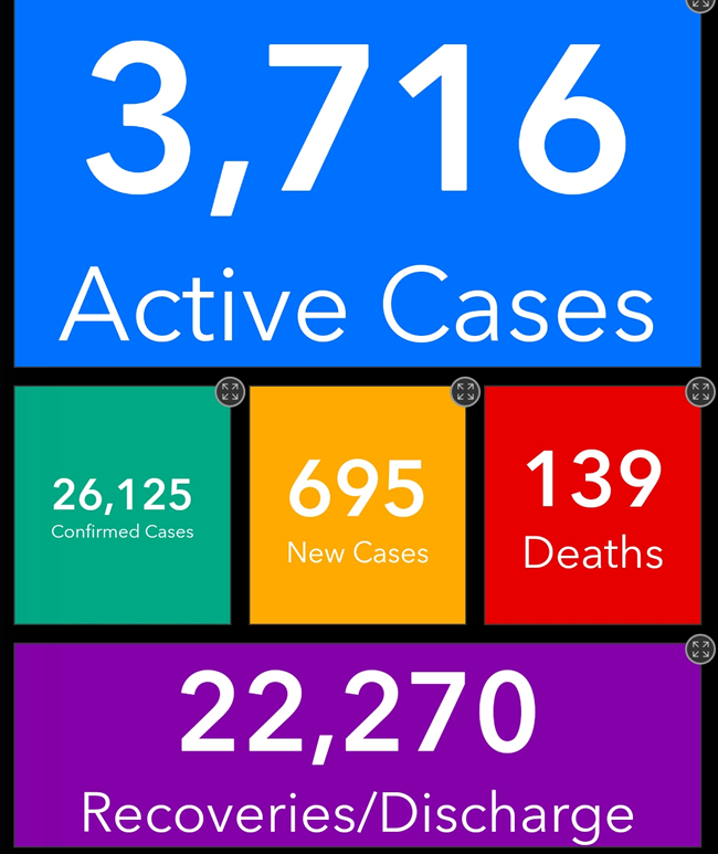 The Ghana Health Service has confirmed 695 new Covid-19 cases, increasing the country’s total to 26,125.