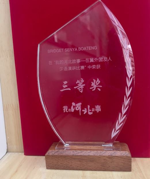The young and ambitious Ghanaian medical doctor in training received the prestigious Hebei Provincial Speech and Language Award organized by the International Promotion Office of China.